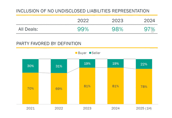 Combining data with practical experience yields insights that can drive better outcomes in M&A. One such insight that dealmakers know: paying close attention to even the smallest provision is essential to maximizing the overall value of a deal. To that end, the latest data highlights the increasing significance of the No Undisclosed Liabilities representation as well as earnout provisions.